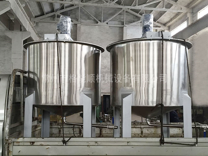 ③ 桨式搅拌器有平桨式和斜桨式两种。平桨式搅拌器由两片平直桨叶构成。桨叶直径与高度之比为4~10,圆周速度为1.5~3m/s,所产生的径向液流速度较小。斜桨式搅拌器的两叶相反折转45°或60°,因而产生轴向液流。桨式搅拌器结构简单,常用于低粘度液体的混合以及固体微粒的溶解和悬浮。