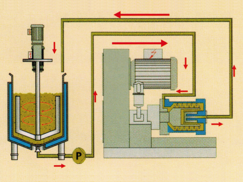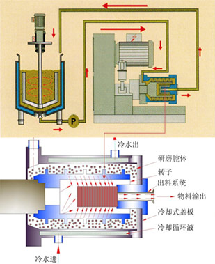 可实现低温砂磨 缩短浆料在磨腔内的滞留时间,有效抑制温度上升。 通过循环冷却水的冷却,可实现低温砂磨。 |
