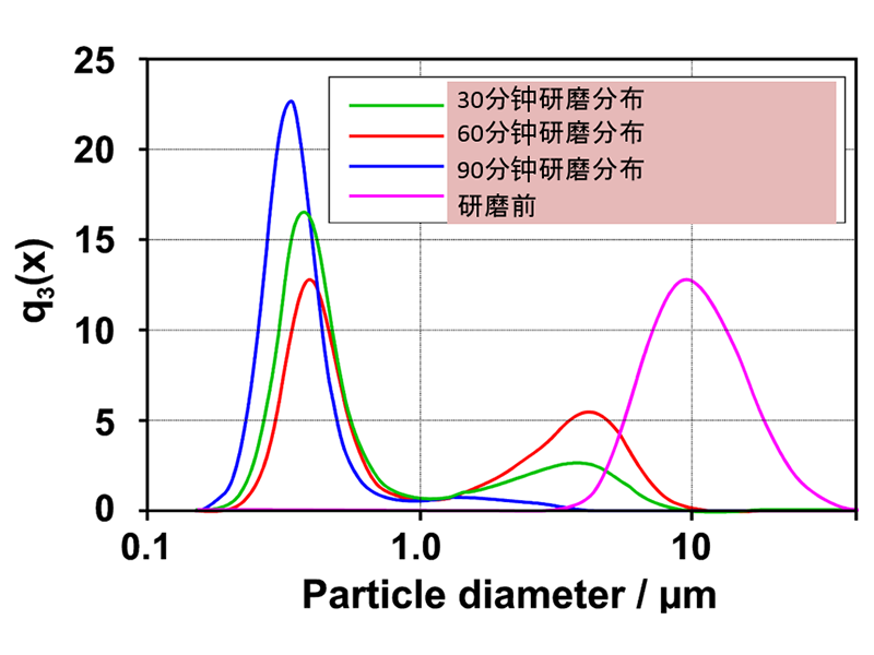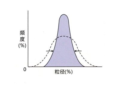 ![]() 粒度分布 ![]() 相比传统磨机,即使在相同的平均粒径,它可以得到集中的粒度分布。 |