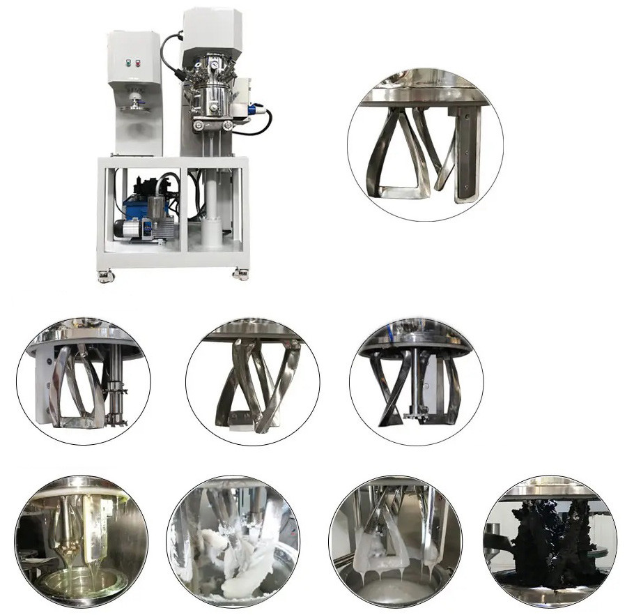 集反应、混合、混炼、分散为一体的高效、多用途设备;釜内搅拌桨,在公转的同时也自转,使物料上下及四周流动,从而在很短时间内达到混合效果,搅拌过程中无死角且效果是普通搅拌机的十几倍;